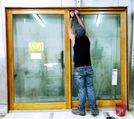 We are fully capable of taking your doors, windows, etc... to an off site secure location to refinish the wood work. This can involve Heavy sanding, meticulous prep, spraying sanding sealer, catalyzed vinyl lacquer, or paint. We do all of this away from your project so there is no risk with the chemicals. Let us turn those ugly old doors into beautiful brand new looking doors.