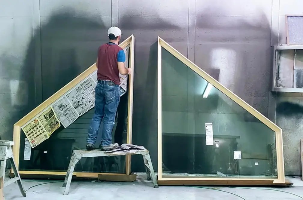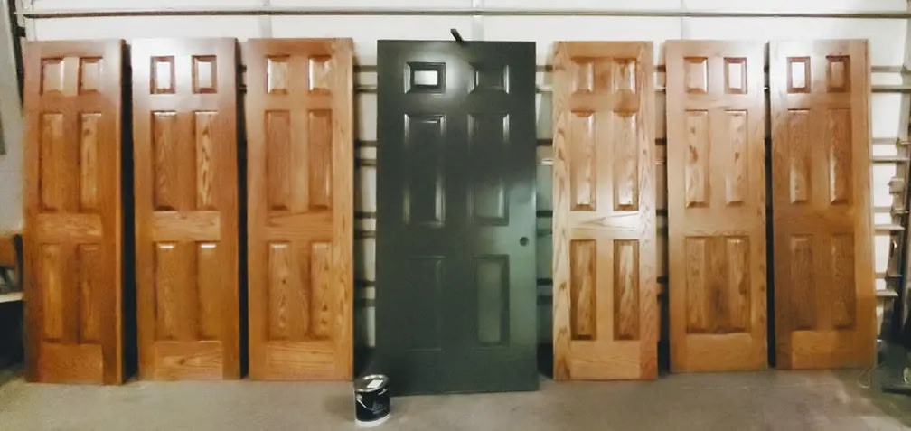 We are fully capable of taking your doors, windows, etc... to an off site secure location to refinish the wood work. This can involve Heavy sanding, meticulous prep, spraying sanding sealer, catalyzed vinyl lacquer, or paint. We do all of this away from your project so there is no risk with the chemicals. Let us turn those ugly old doors into beautiful brand new looking doors.